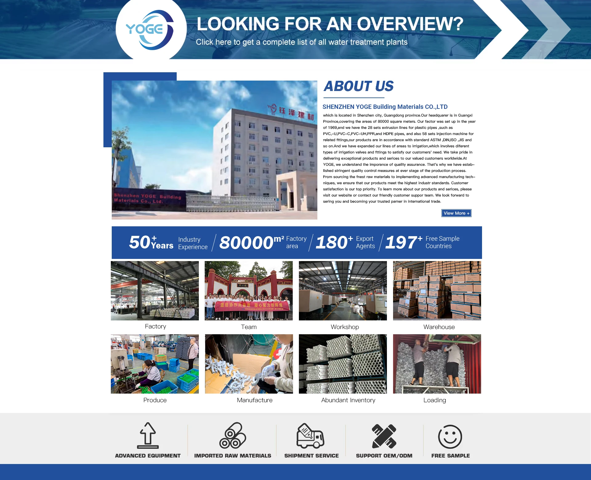 YOGE Main Products:PPR/PEX/HDPE/PVC/PPH Pipes & Fittings, Brass Valve/Brass Bibcock, Pipe Tools, etc